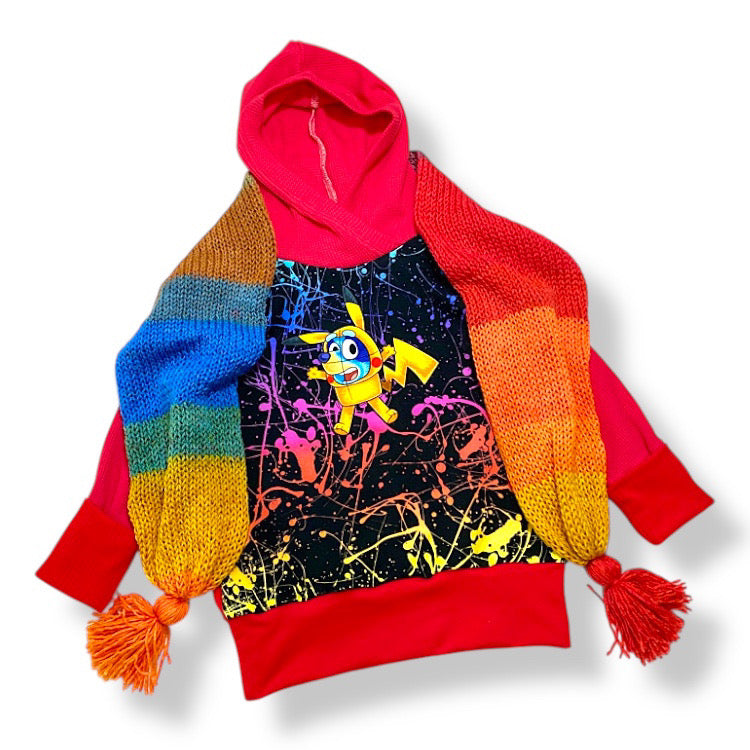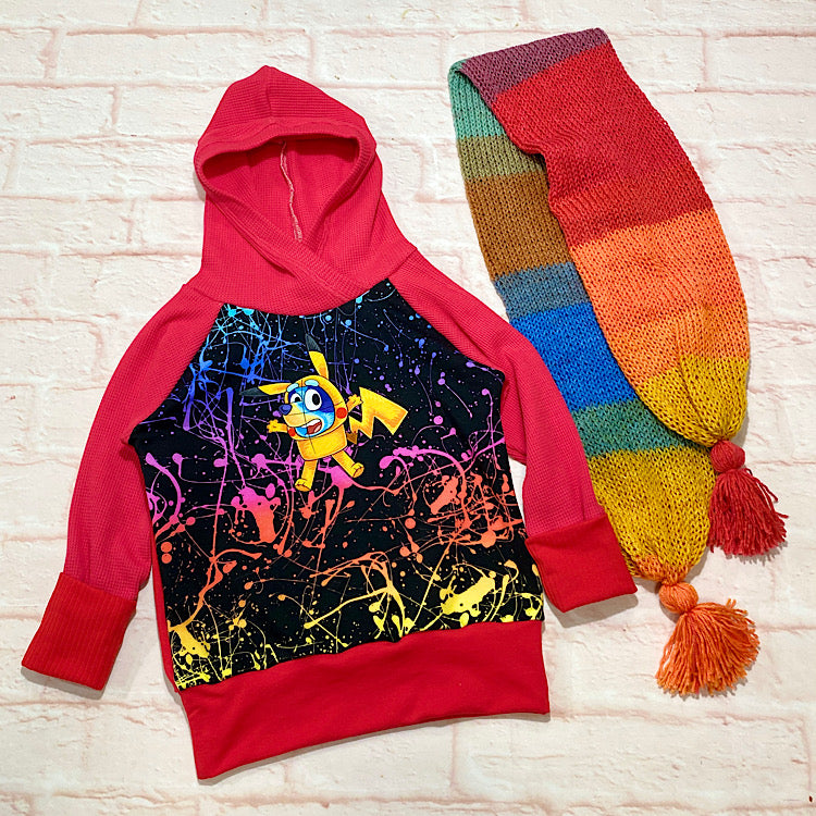 This winter set comprises of a beautiful handmade scarf and hoodie, the hoodie is made from stretch French terry and waffle knit fabrics.