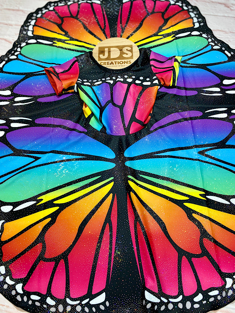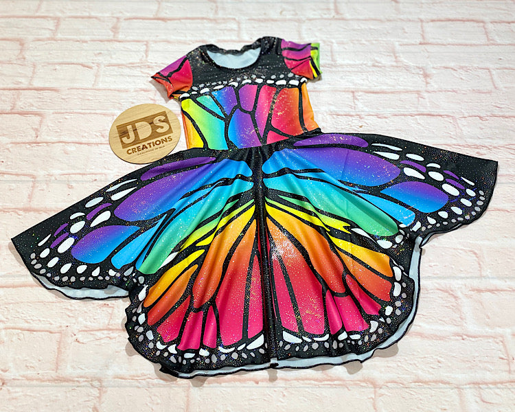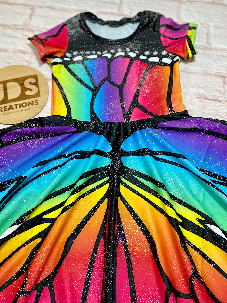 CUSTOM MADE Spandex full circle skater dress - Rainbow Butterfly