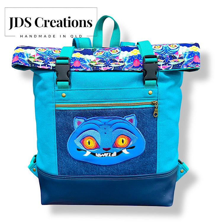 Each backpack has been designed, cut out, artwork embroided, and sewn up by me in Verrierdale on the Sunshine Coast, QLD using materials I have sourced from Australian businesses.